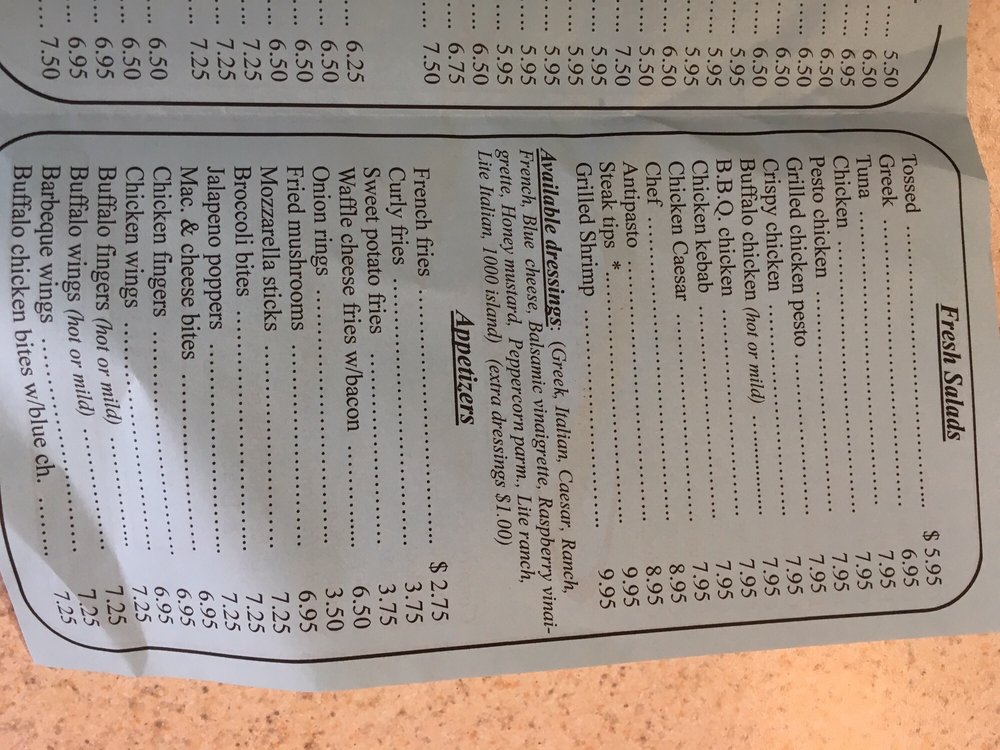 Cold Chicken Salad/Pesto, Provolone Cheese / with shredded lettuce, tomatoes, onions, green peppers, olives and pickles. ( salt and pepper)