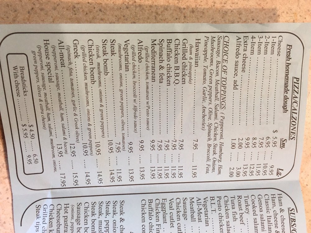 Pepperoni, Ham ,Salami, Sausage, Meatballs, Onions, Green Peppers, Mushrooms, Black Olives, Tomato Sauce and Extra Pizza Cheese